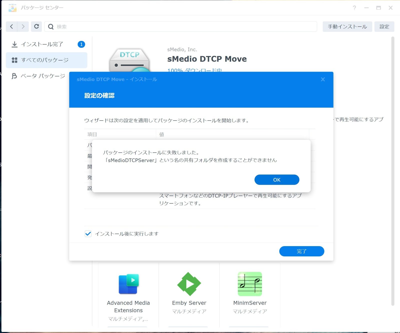 3.sMedio DTCP Move にて「sMedioDTCPServer」という共有フォルダが作成できず、データを復元できなかった。(アプリのインストールが出来ない)→実際にはフォルダが存在しているが削除もできないでいた為に、インストールが出来なかった。