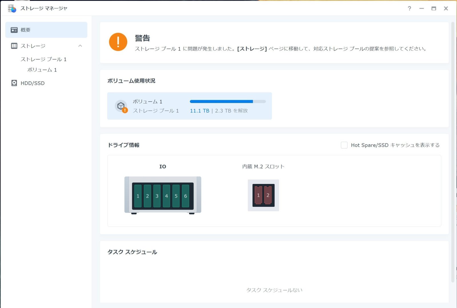 そもそも、自分のSynology DS1621+は先に購入したDS218Jで作成した構成をそのままHDDごとDS1621+へ挿しただけという構成でした。