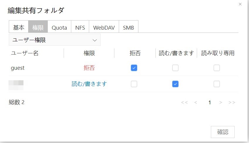 2).フォルダが出来たら、フォルダのアクセス権を設定します。