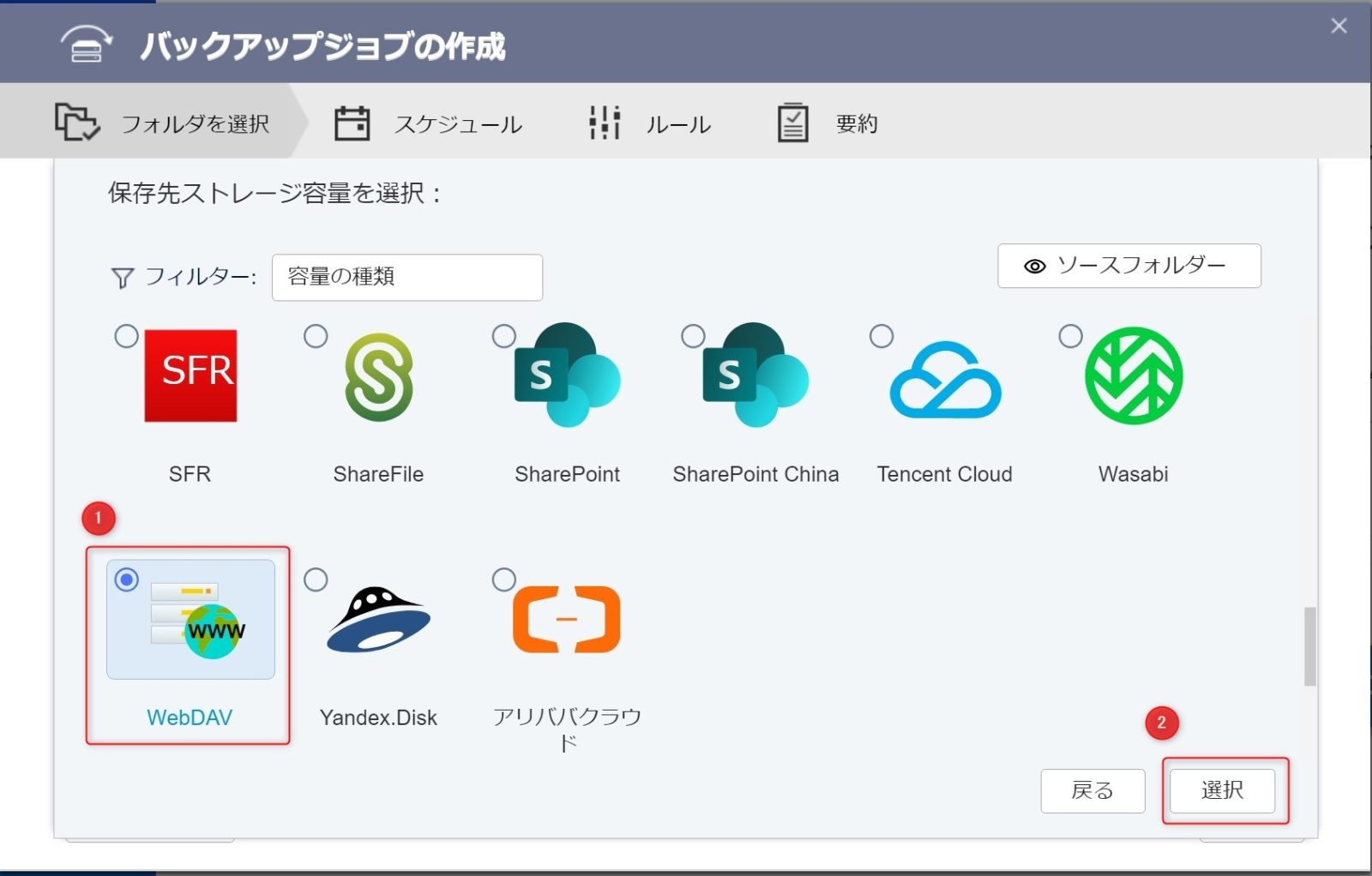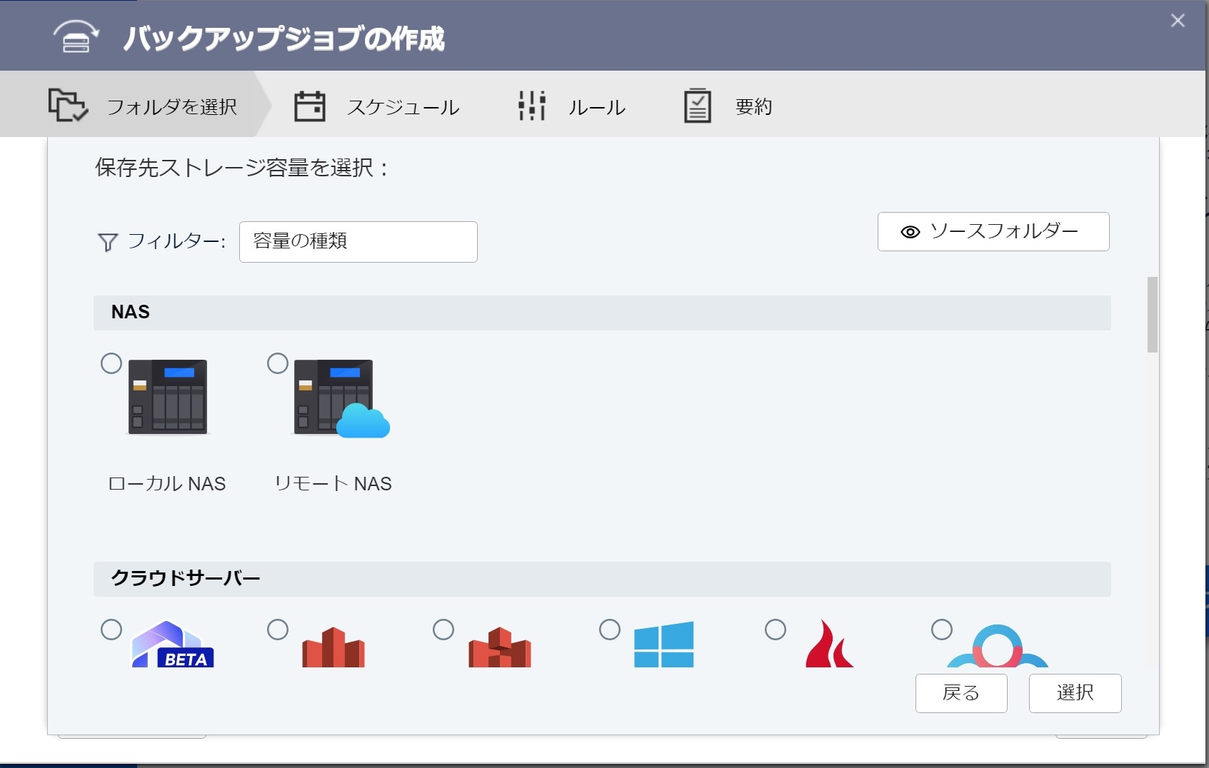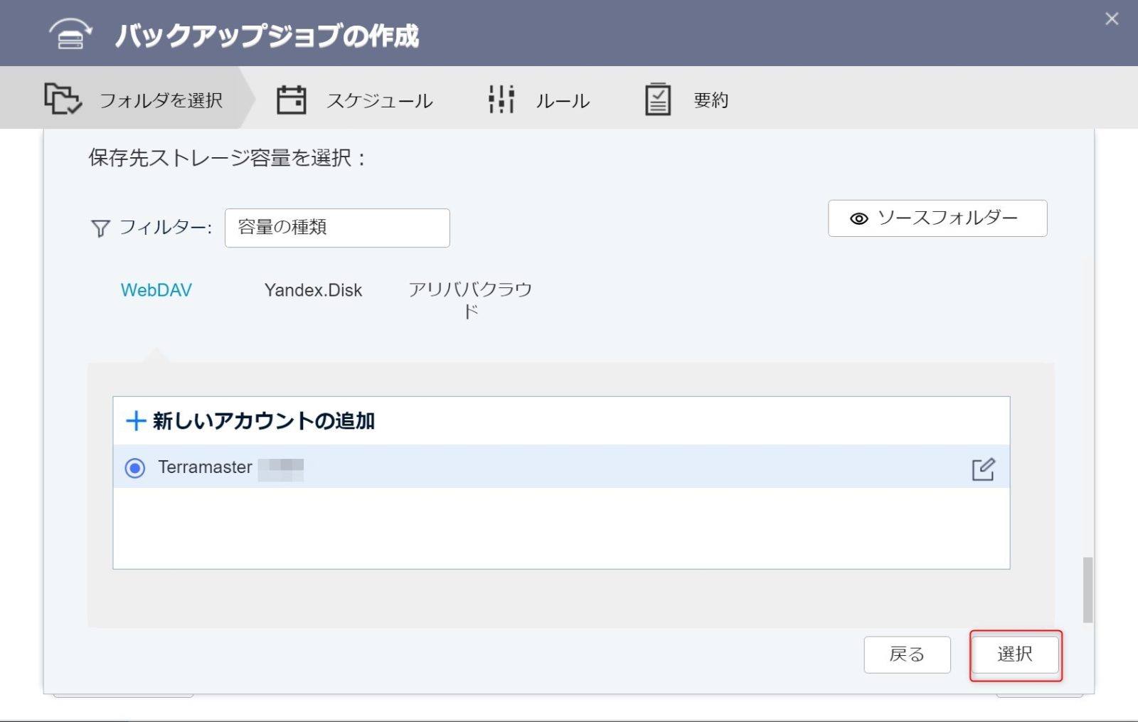 バックアップしたいフォルダを選択します。