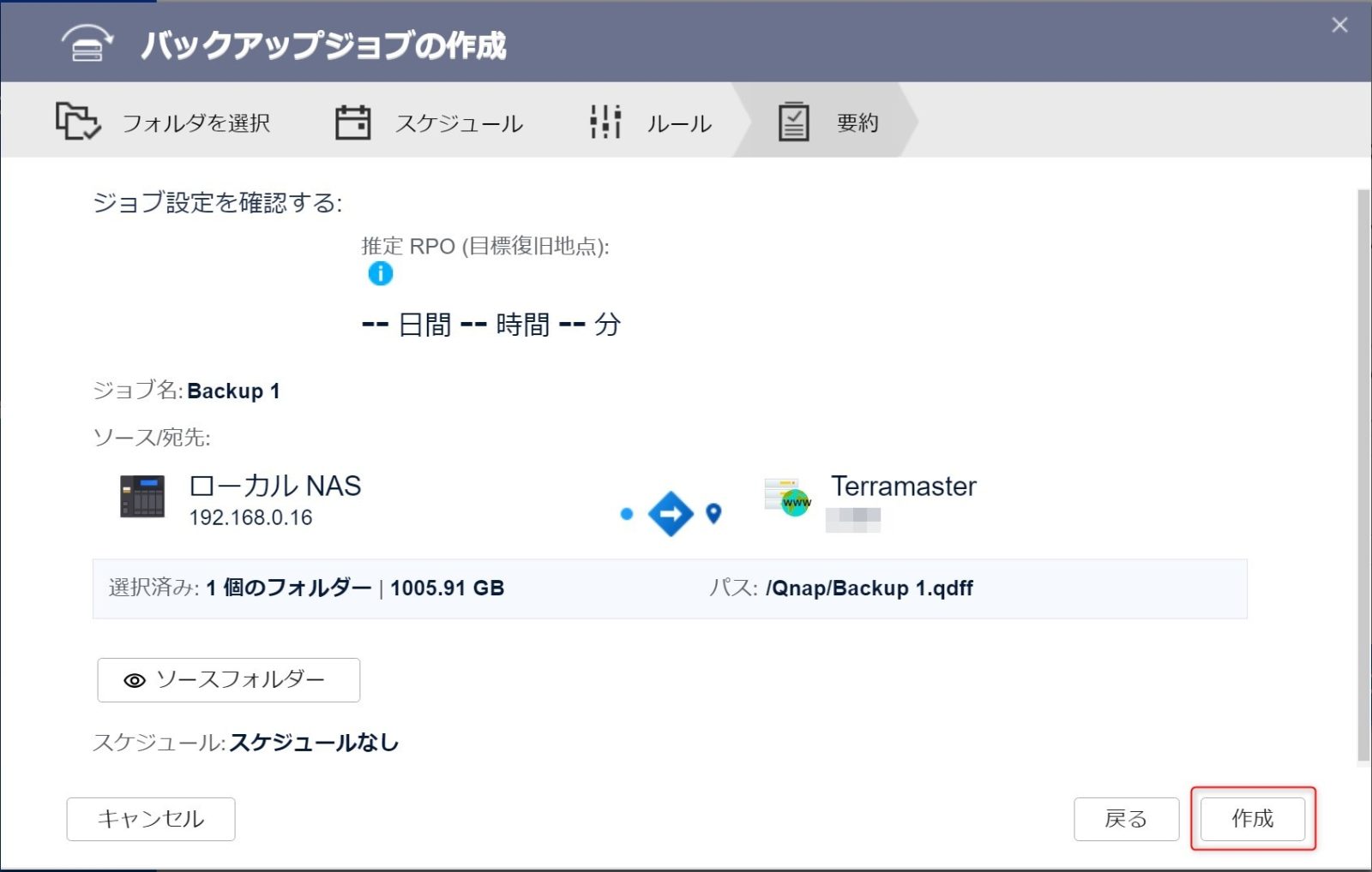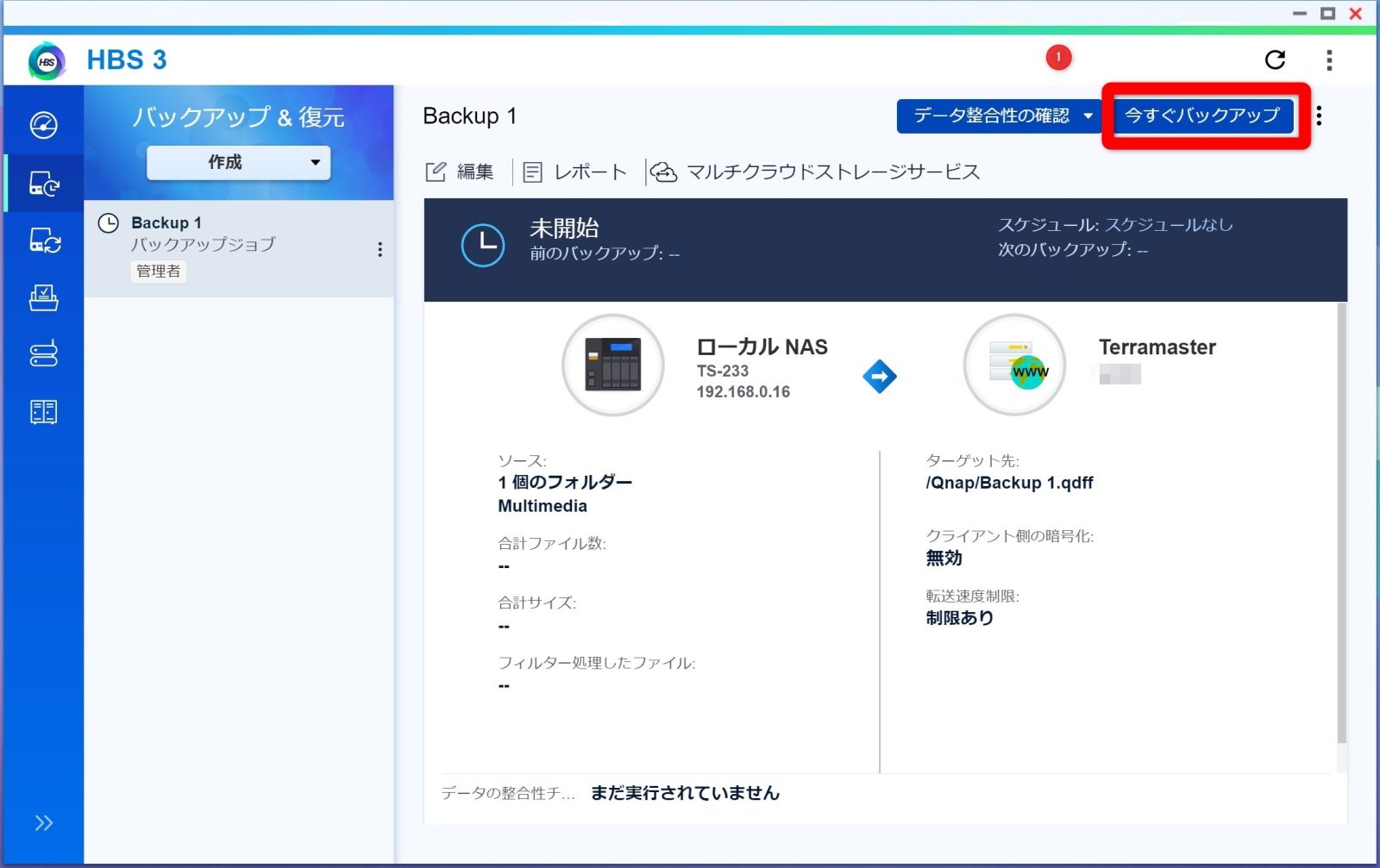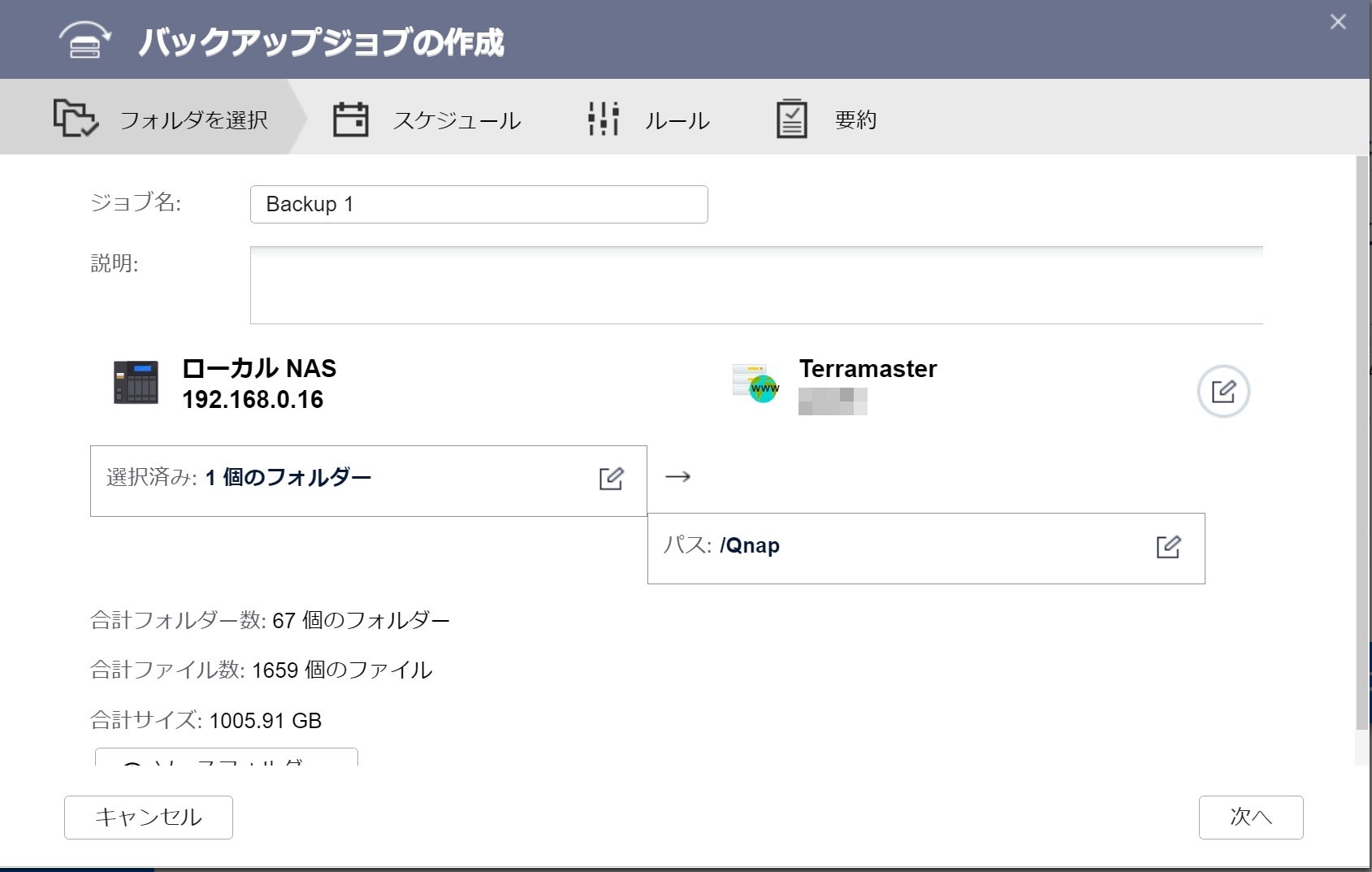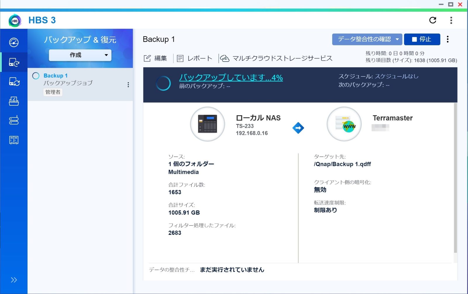 という感じでQnapからWebDevでTerramasterへバックアップする設定は終わりました。