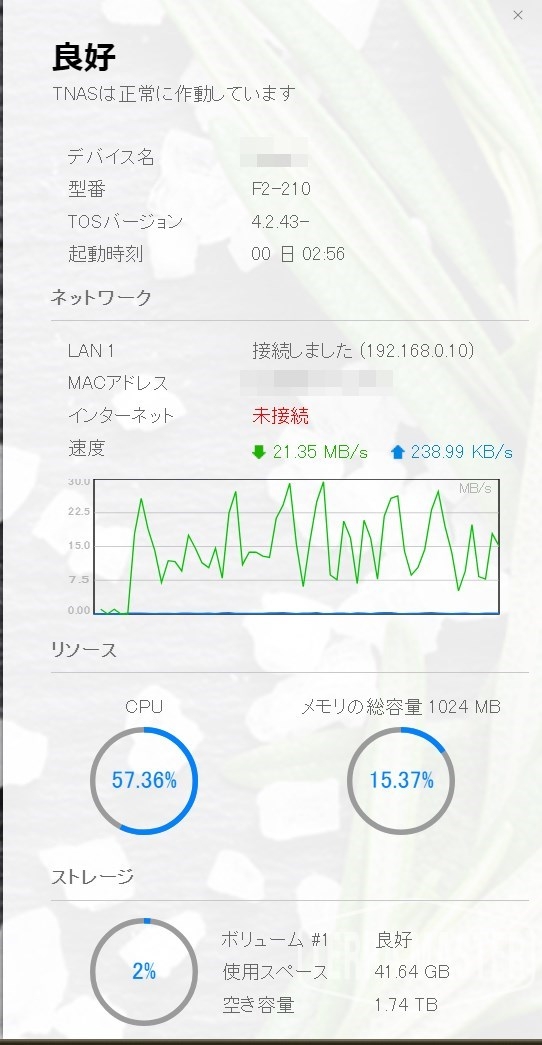 では、QNAP TS-233 /AZの設定です。