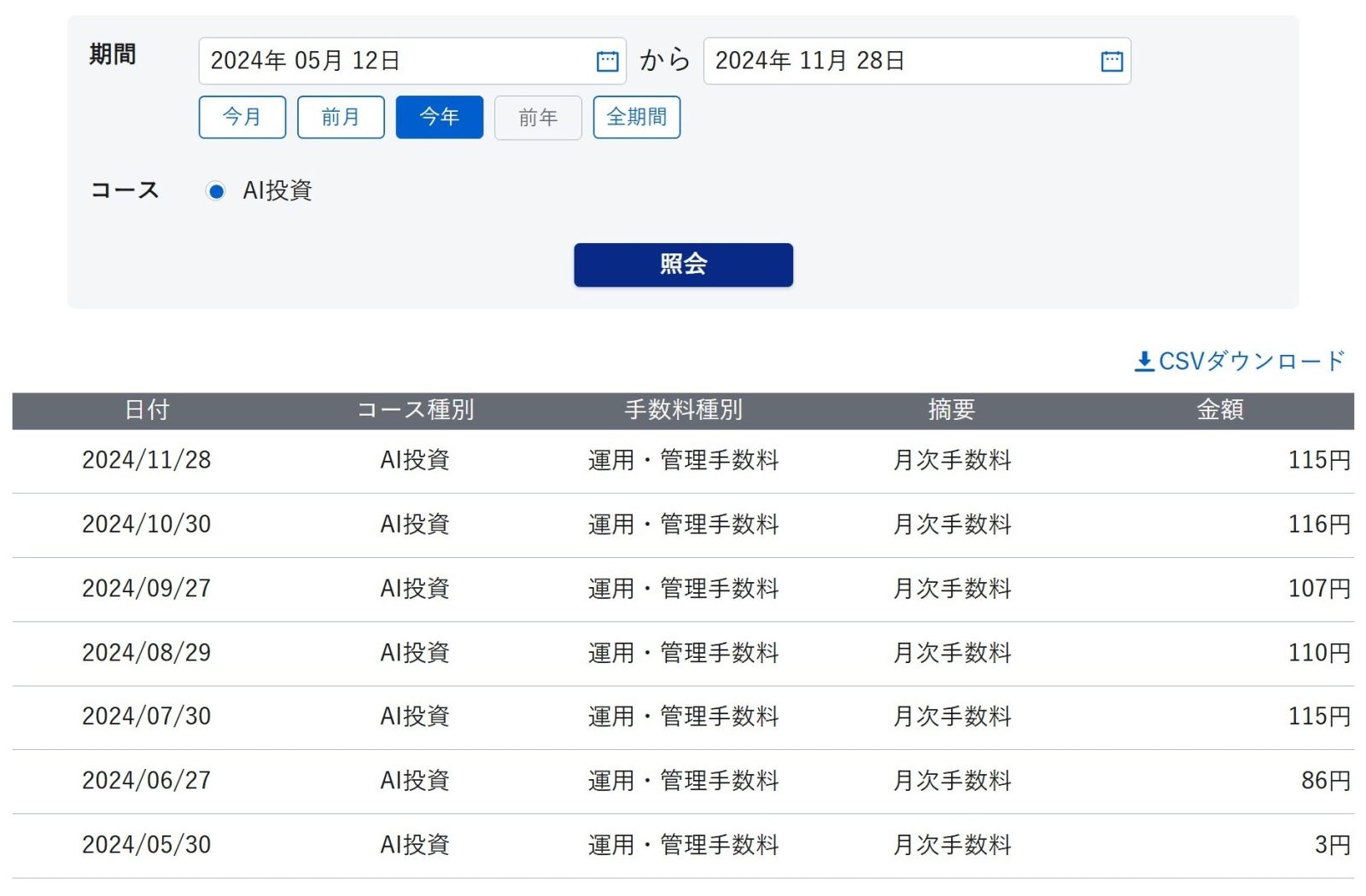 手数料も載せておきます。