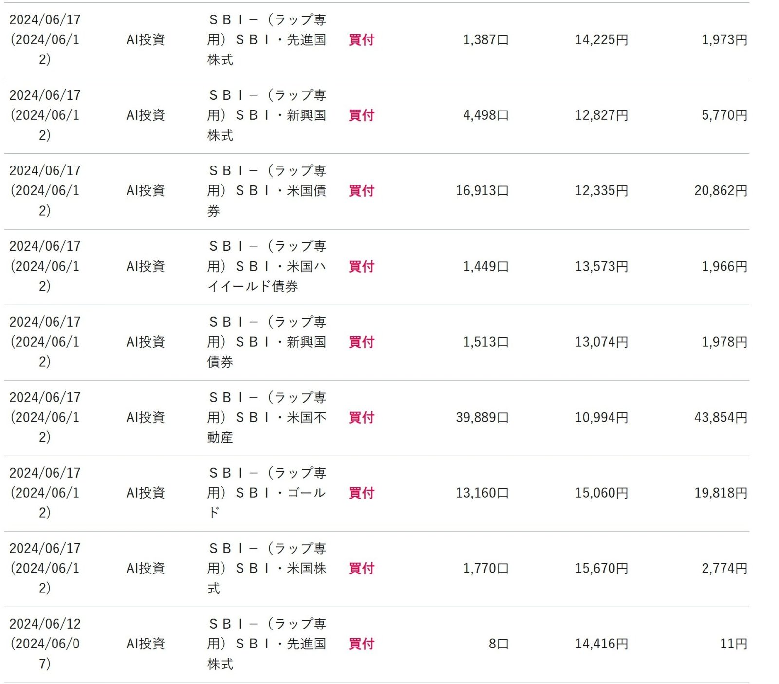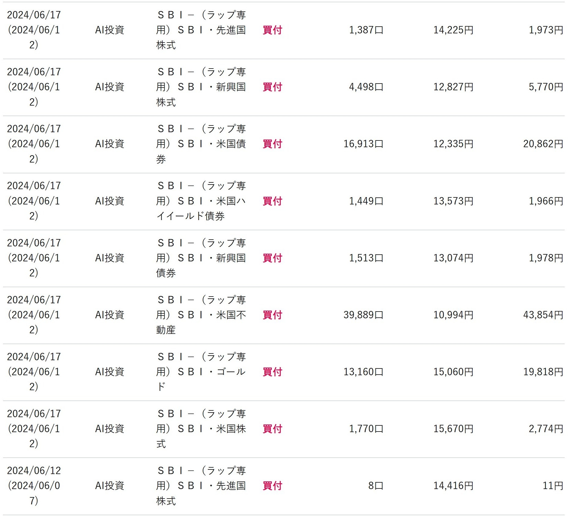 取引しているファンドは上図でも出ていますが、以下になります。