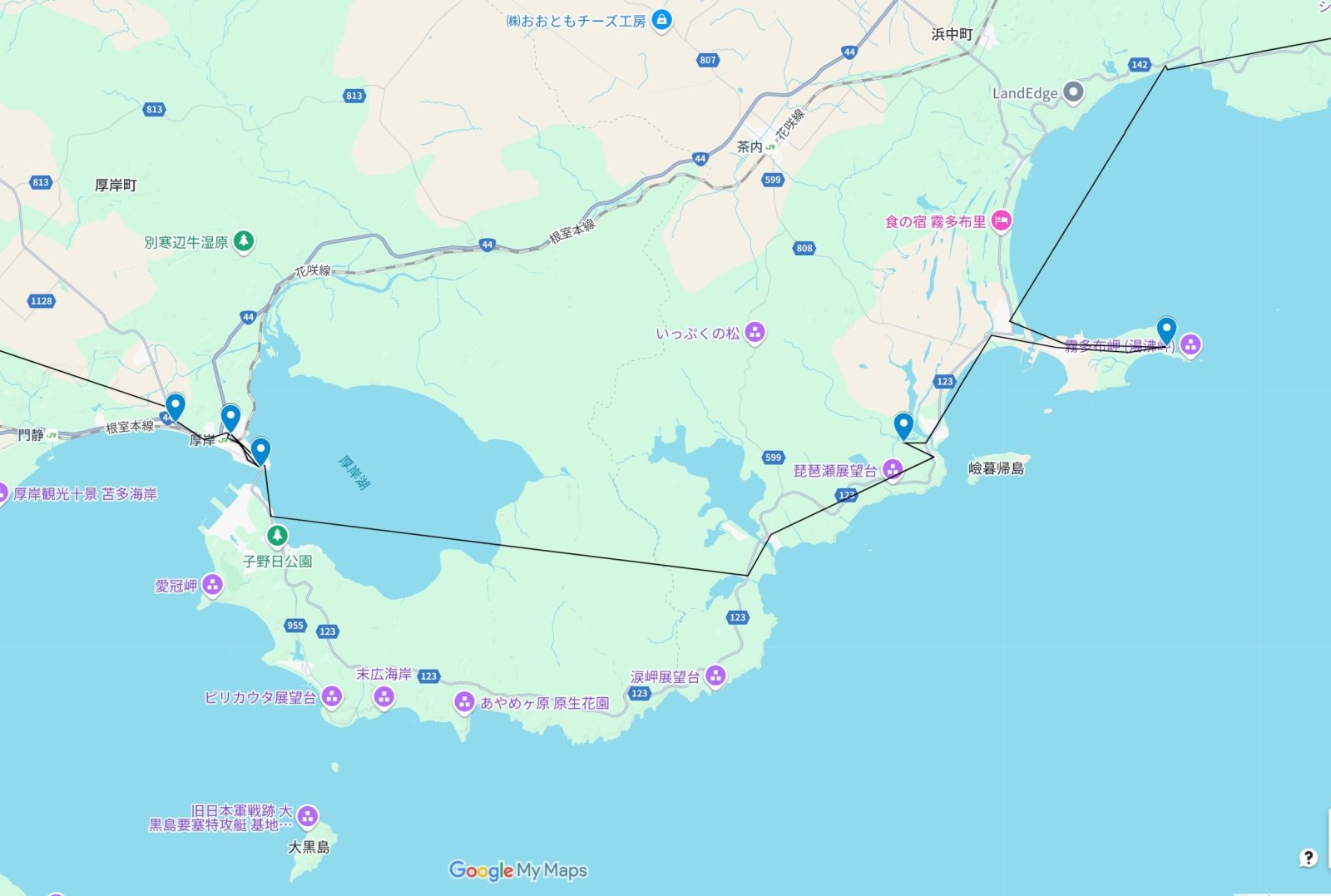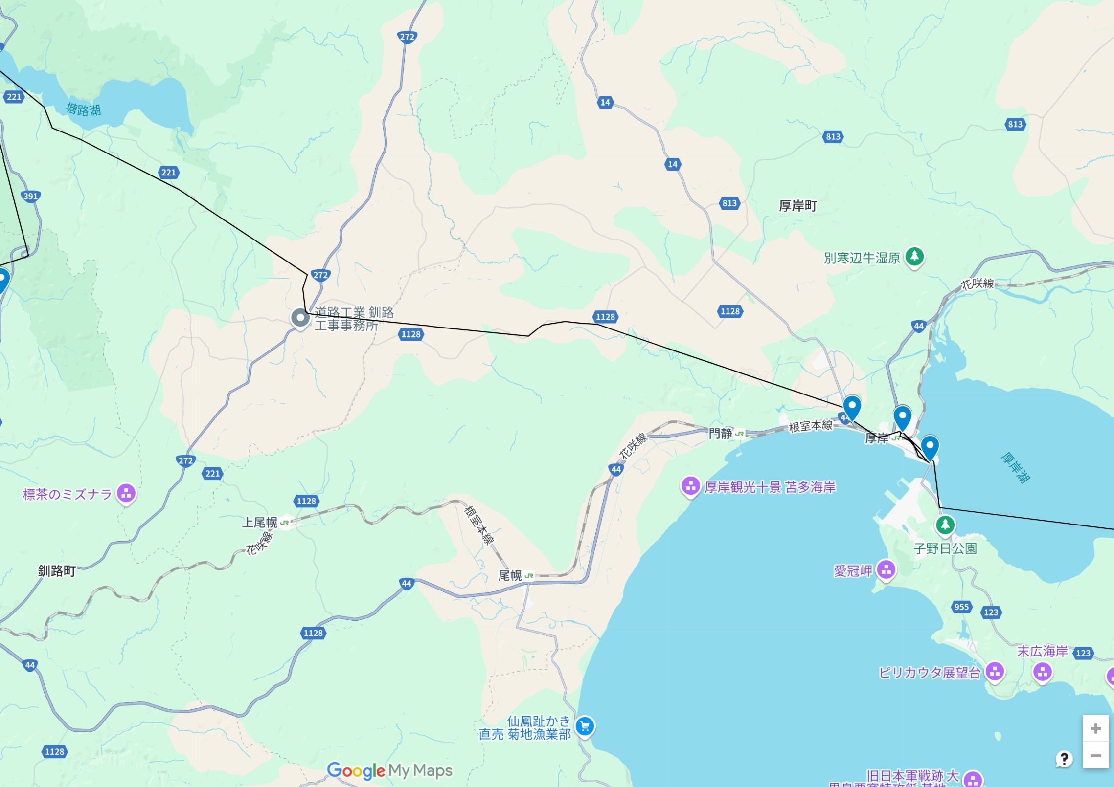 釧路湿原を離れ、厚岸を目指しています。