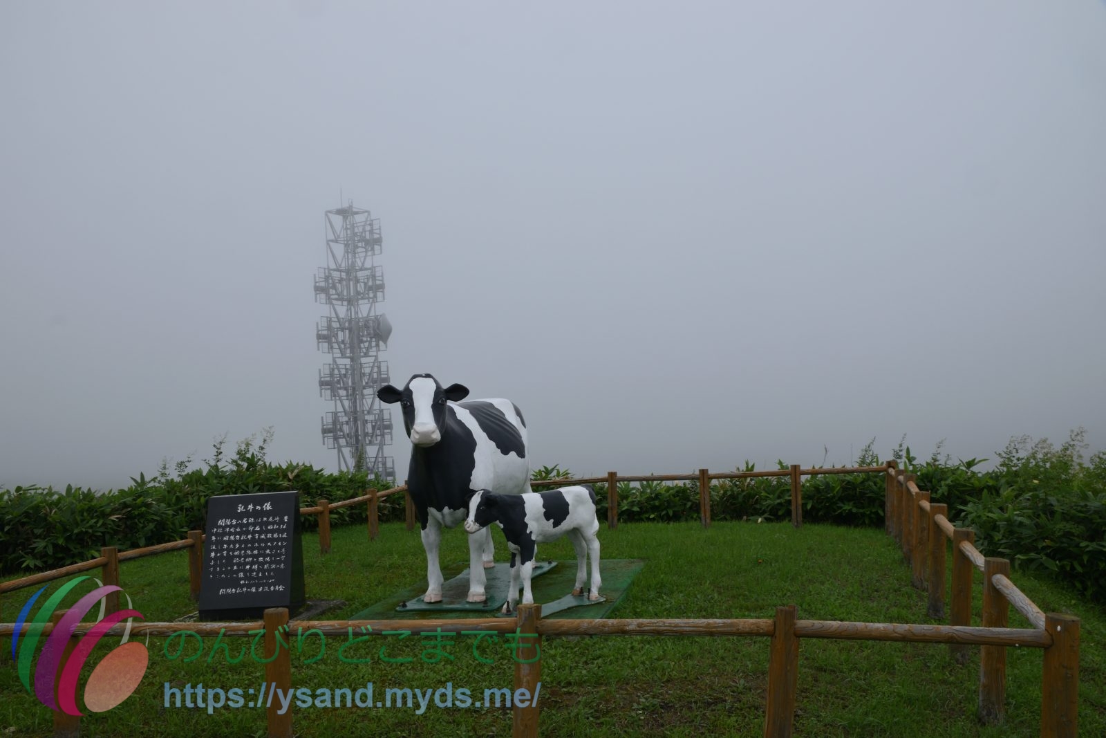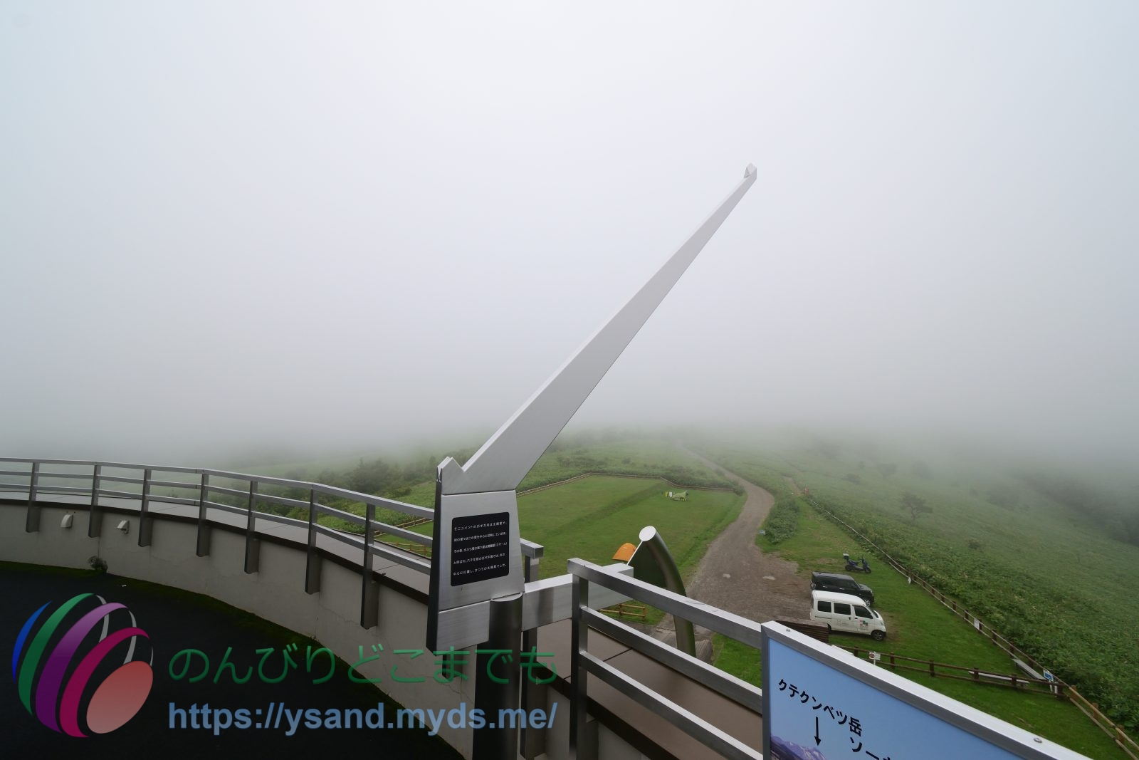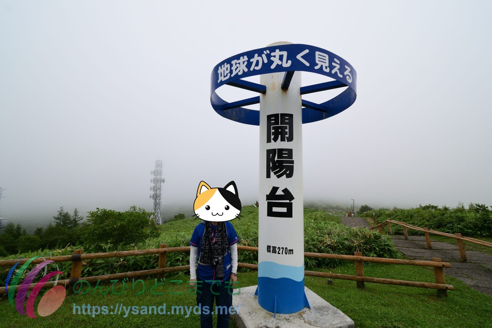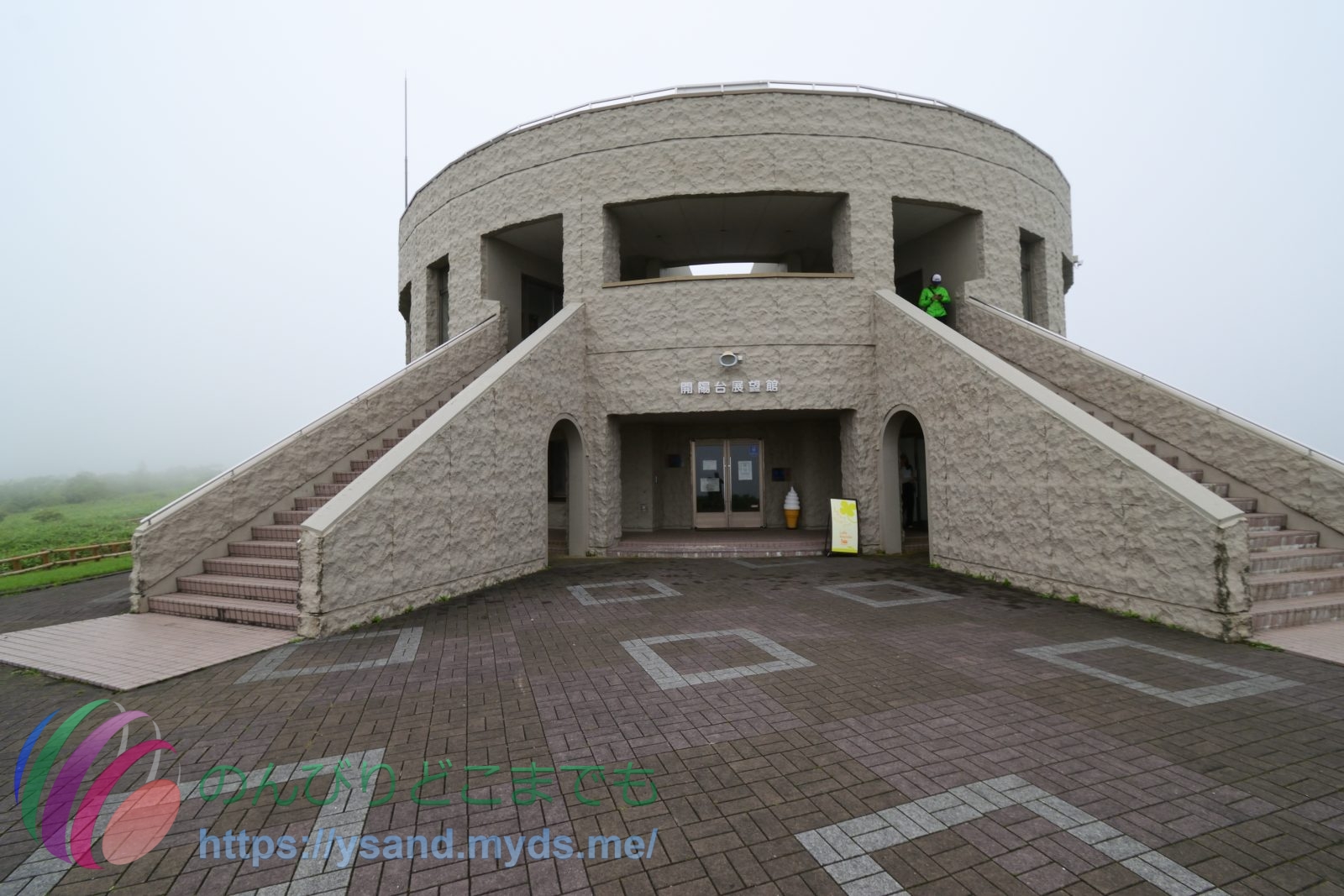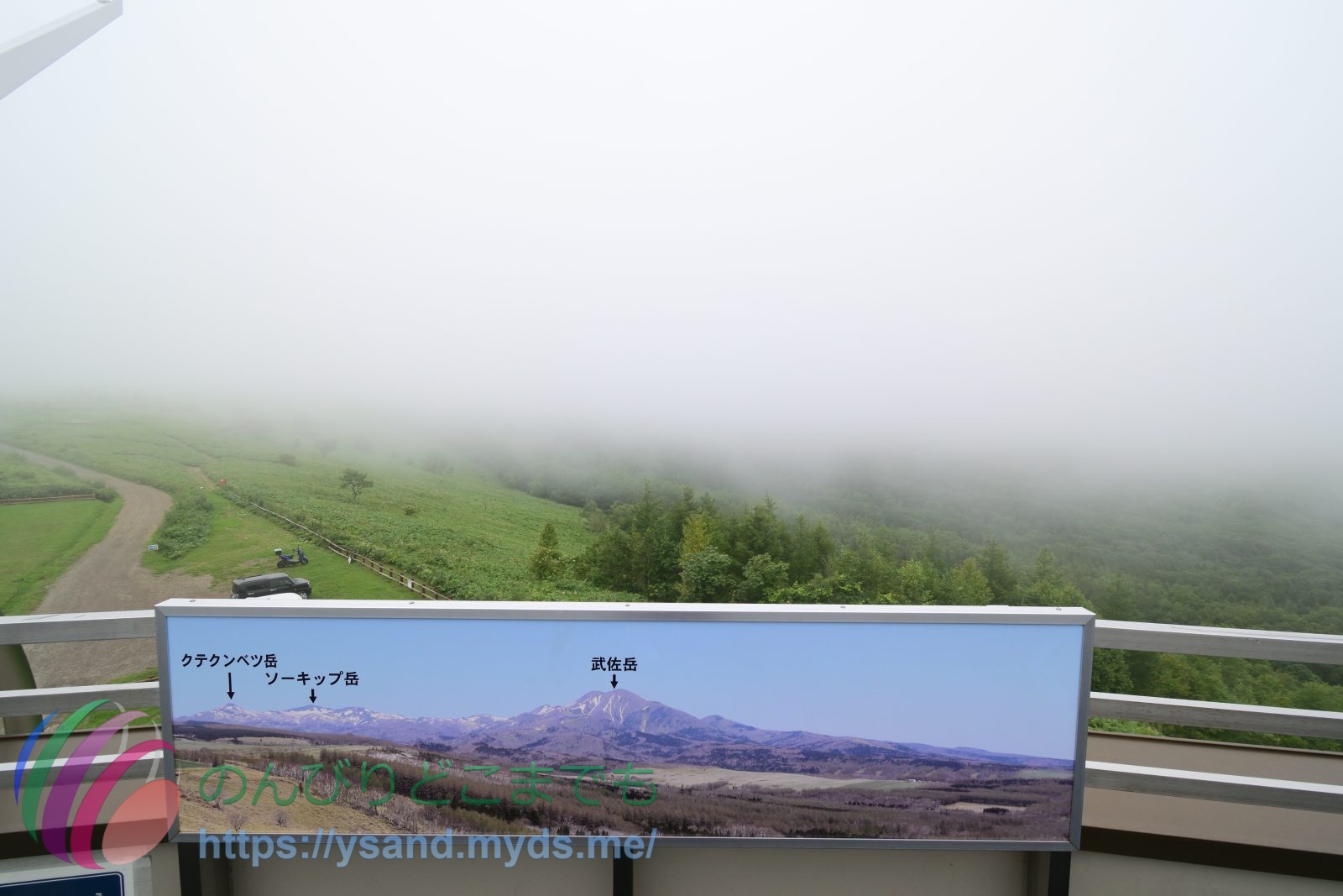 開陽台の展望台からは霧が濃いです。↑