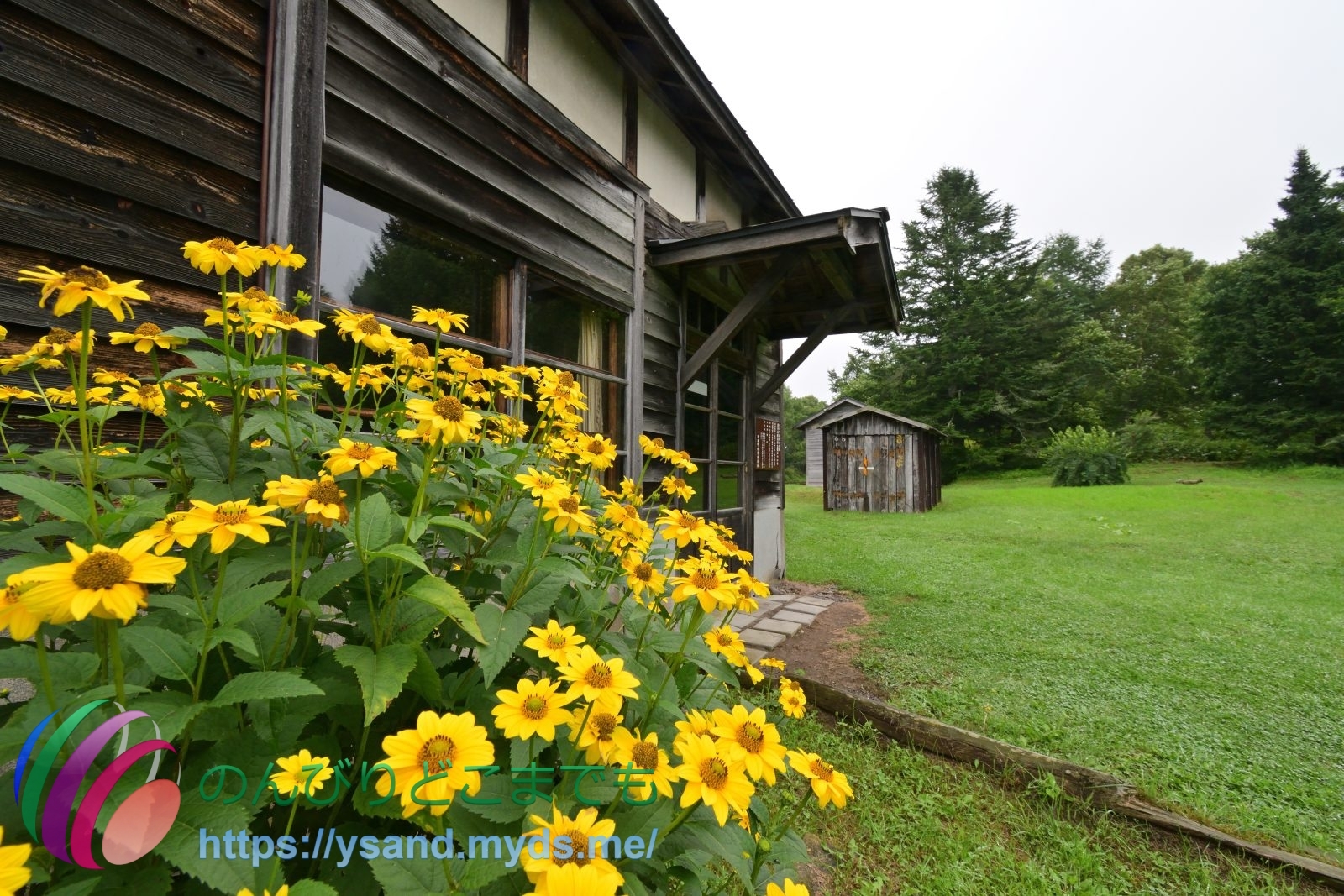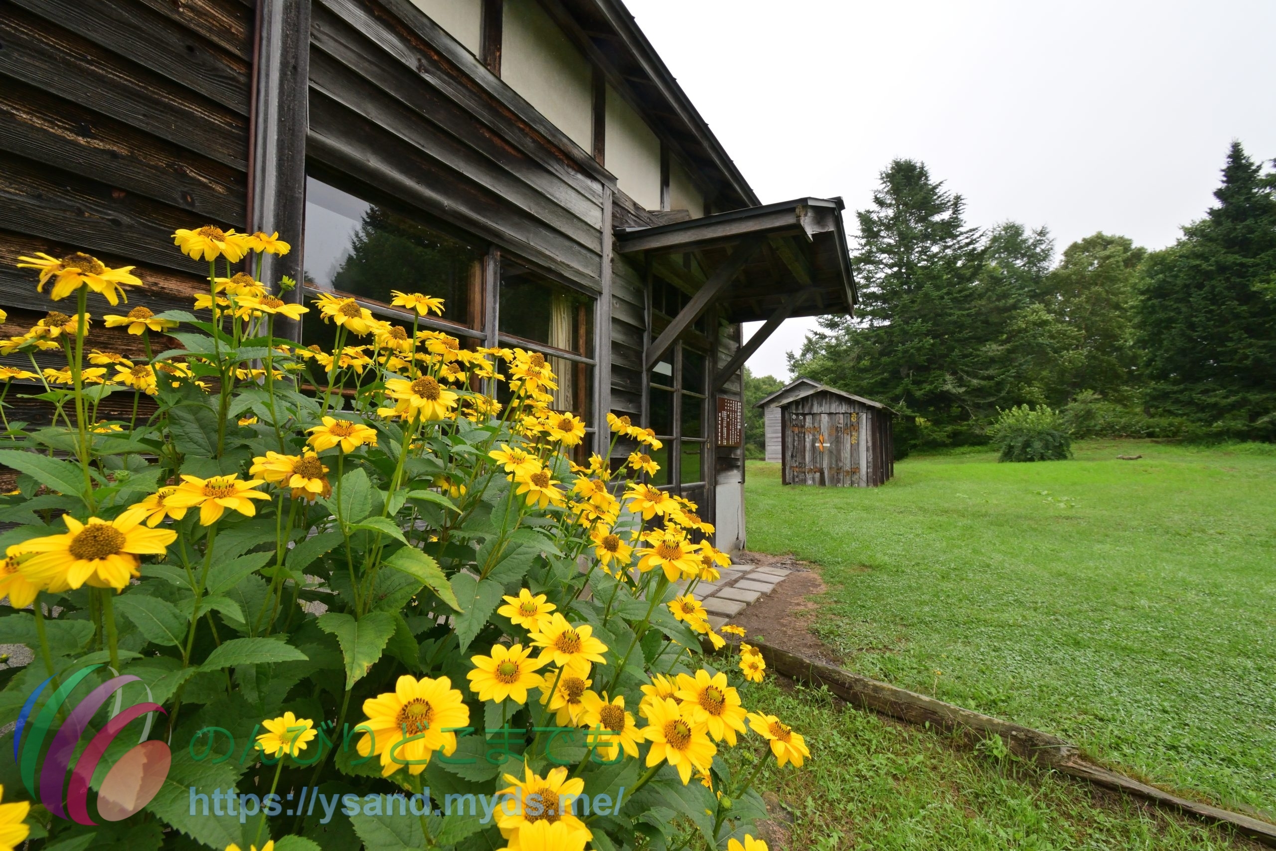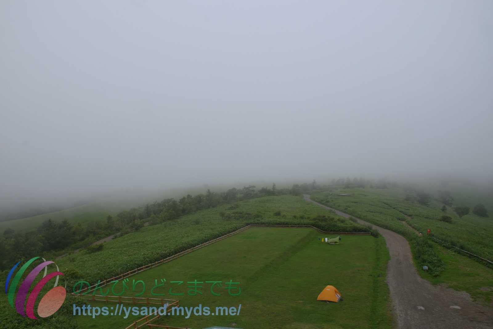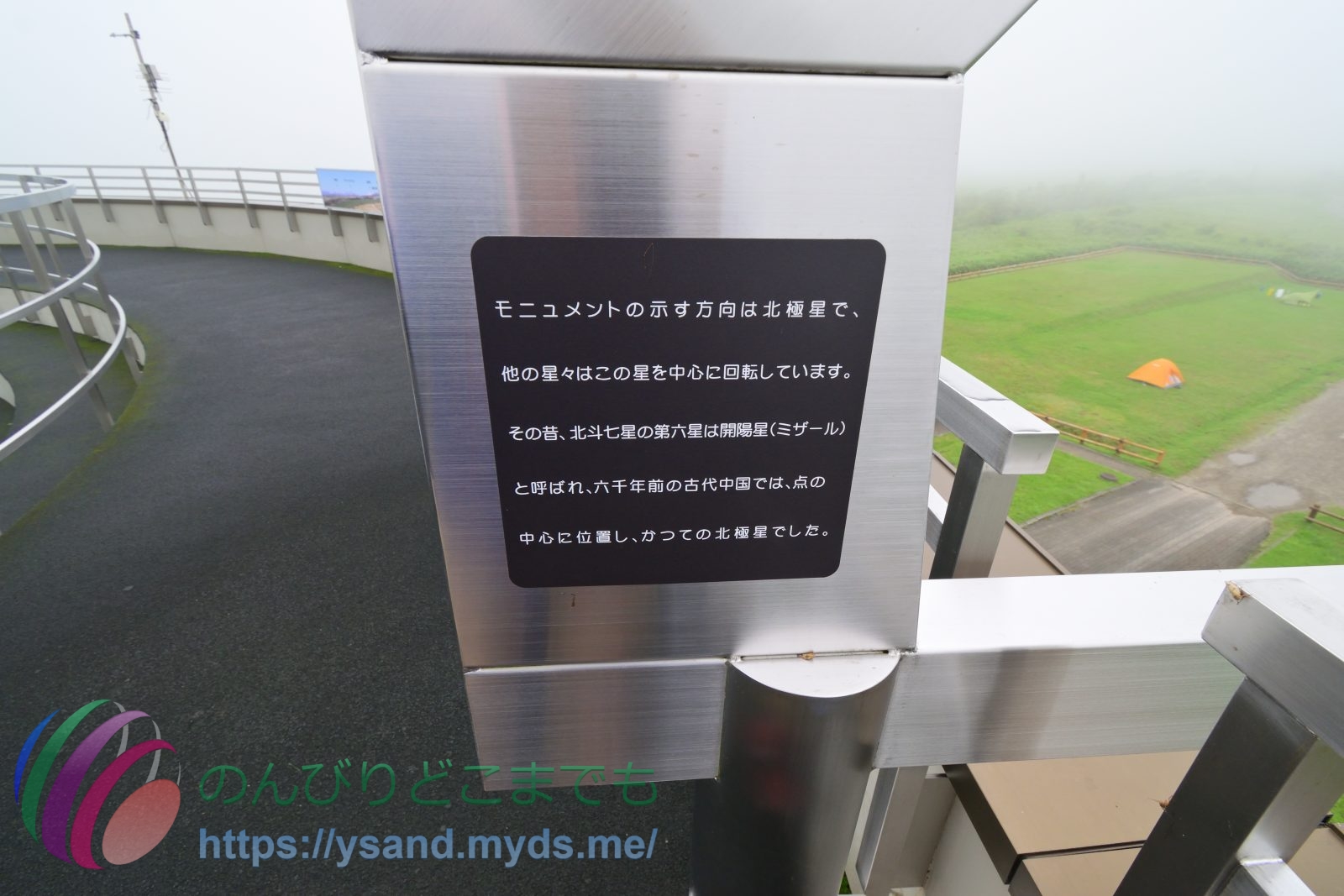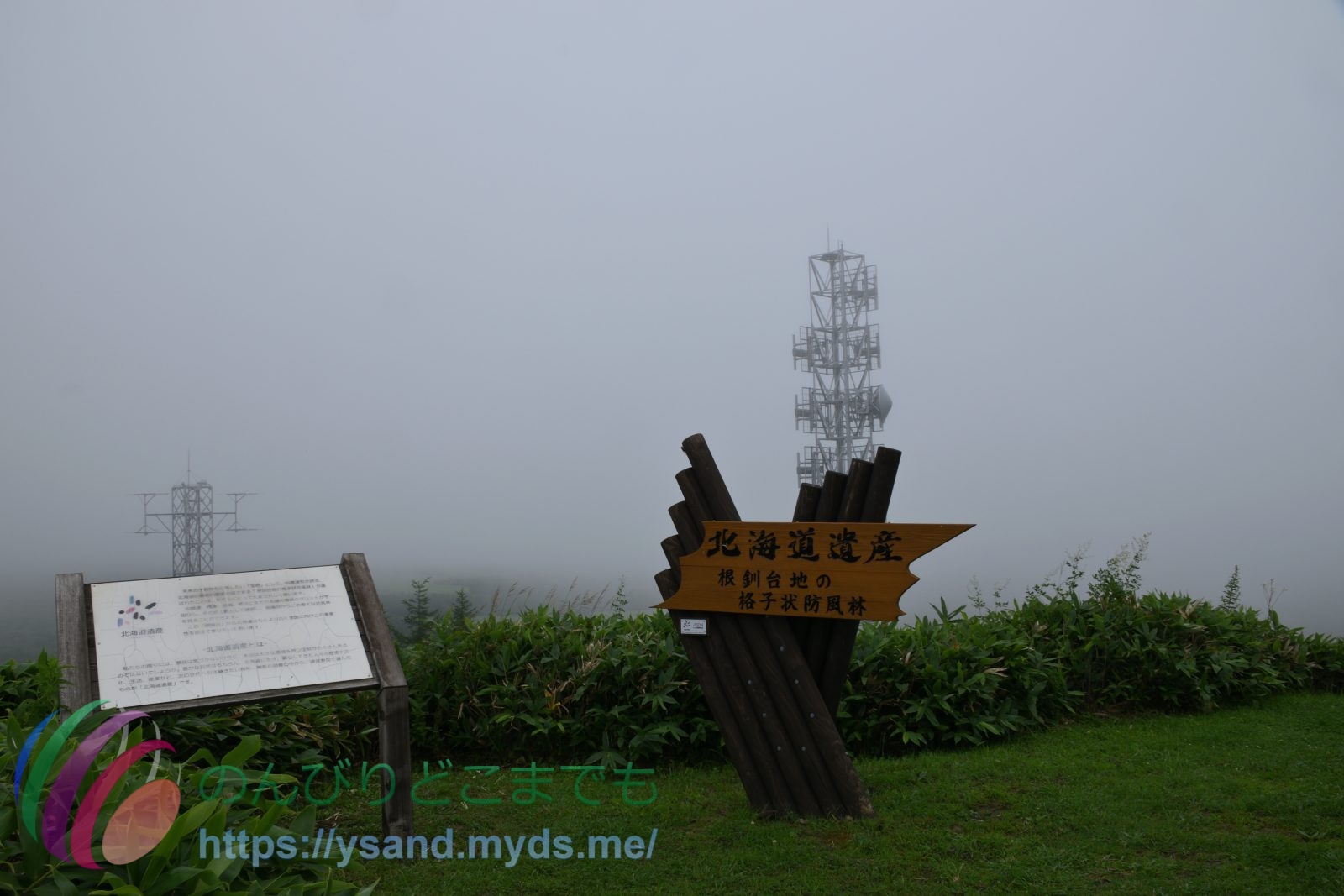 開陽台の展望台からは霧が濃いです。↑