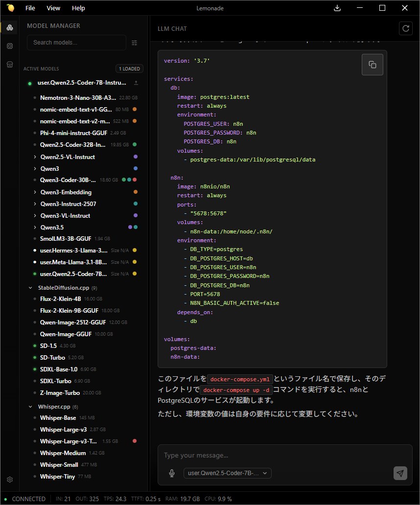 Qwen2.5-Coder-7B-Instruct-GGUFを使って見ました。