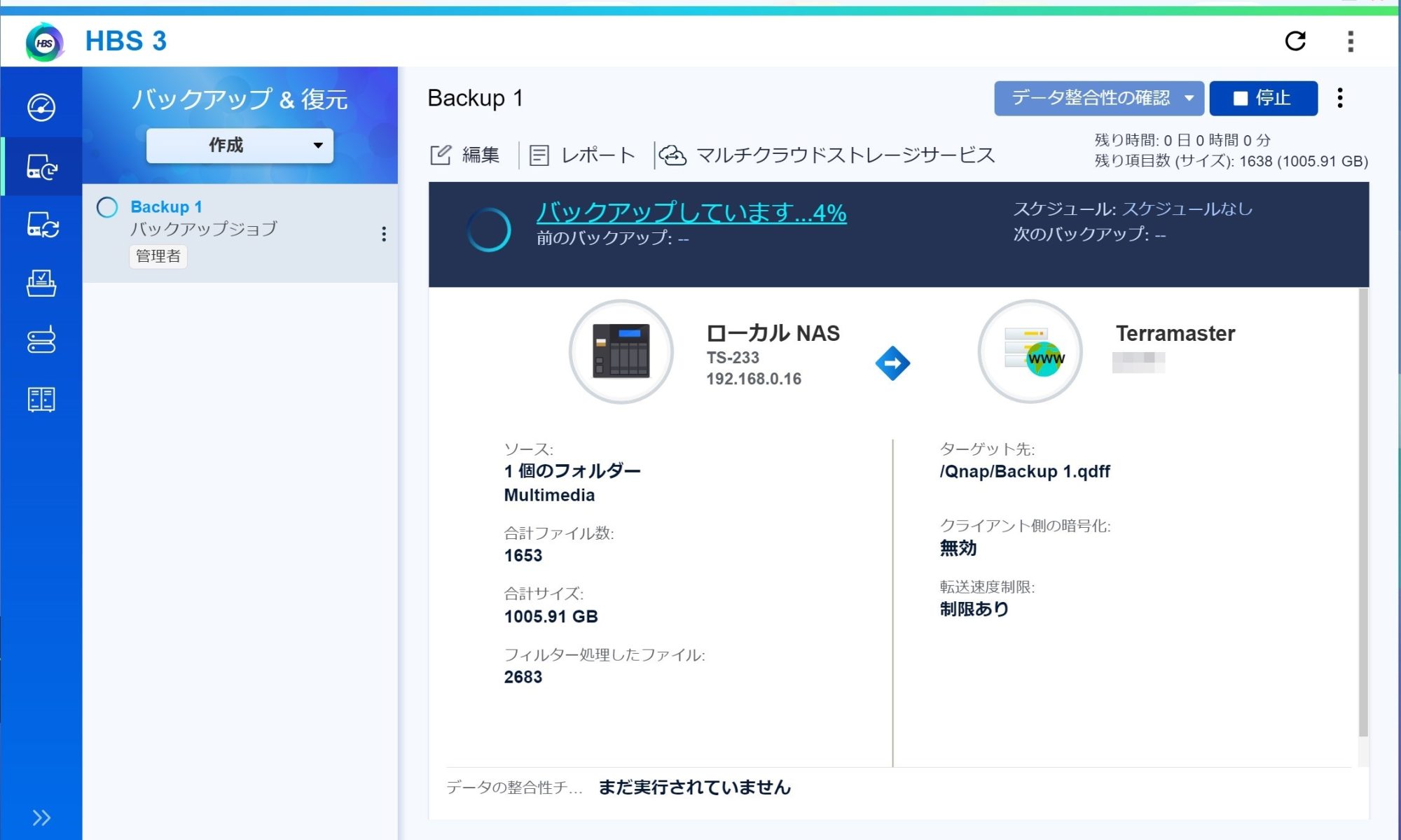 QnapからWebDevでTerramasterへバックアップする。異機種間バックアップ