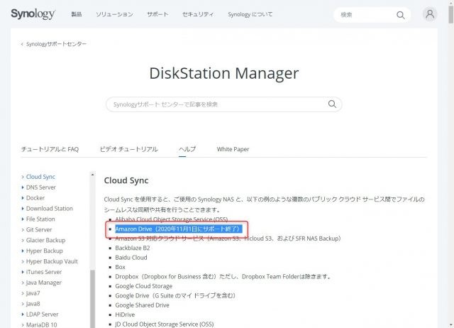 Synology Cloud Sync Amazon Drive とのサポート終了