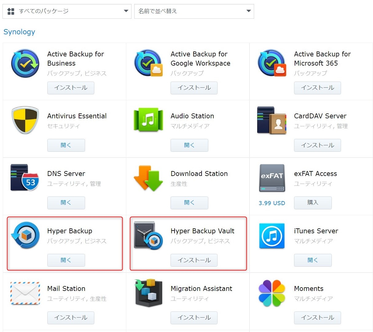 Synology NAS 複数NAS間でのバックアップ Hyper Backup